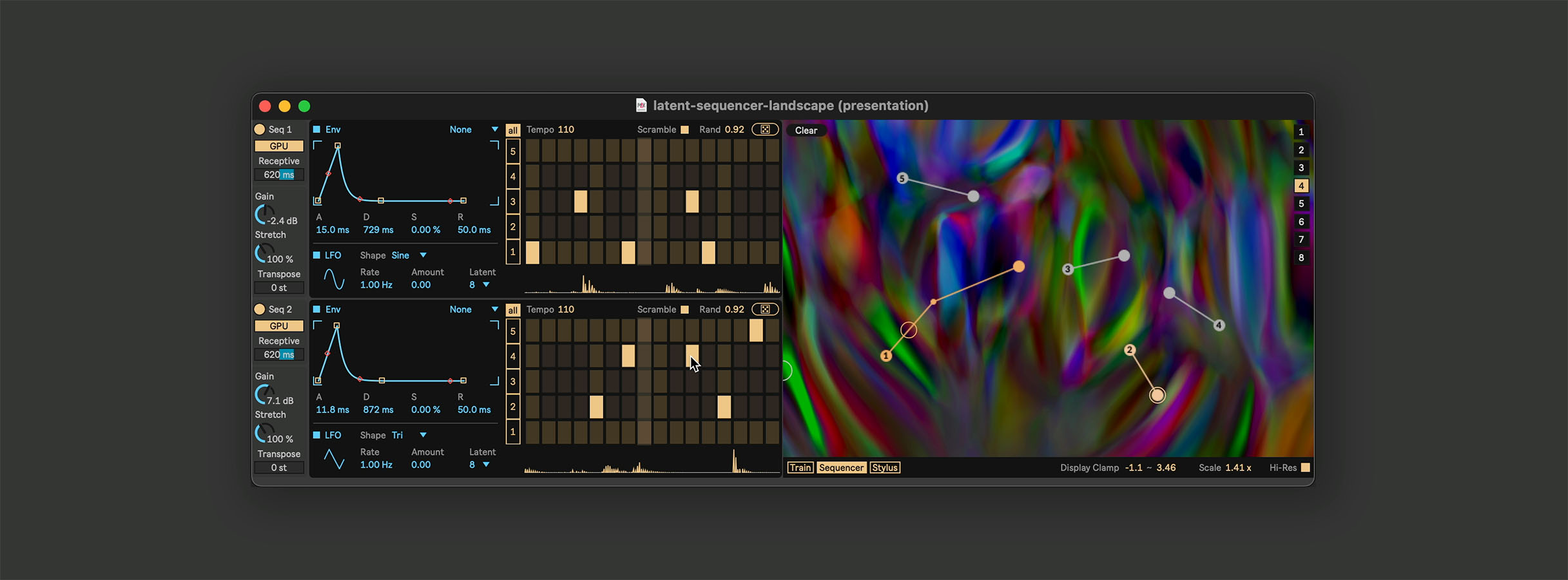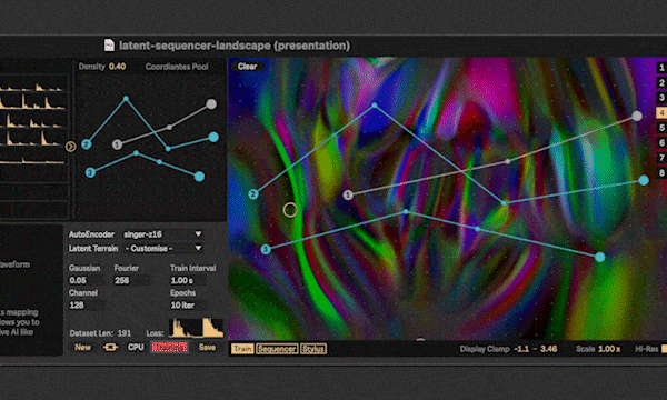 Latent terrain is a coordinates-to-latents mapping model for neural audio autoencoders, can be used to build a mountainous and steep surface map for the autoencoder's latent space. A terrain produces continuous latent vectors in real-time, taking coordinates in the control space as inputs.