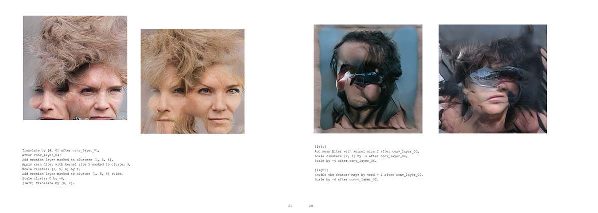 During the re-implementation of Network Bending, I’ve come across plenty of quirks and oddities generated from corrupted models. These models produce impossible, distorted but realistic images, diverted from the original outputs and sometimes lead to aesthetic preoccupations. Although utilising machine autonomous, creating this collection is still like a craft: I marked configurations that cause these semantically meaningful results, tweaked and built the operation template again, and then re-examined the subsequent images.