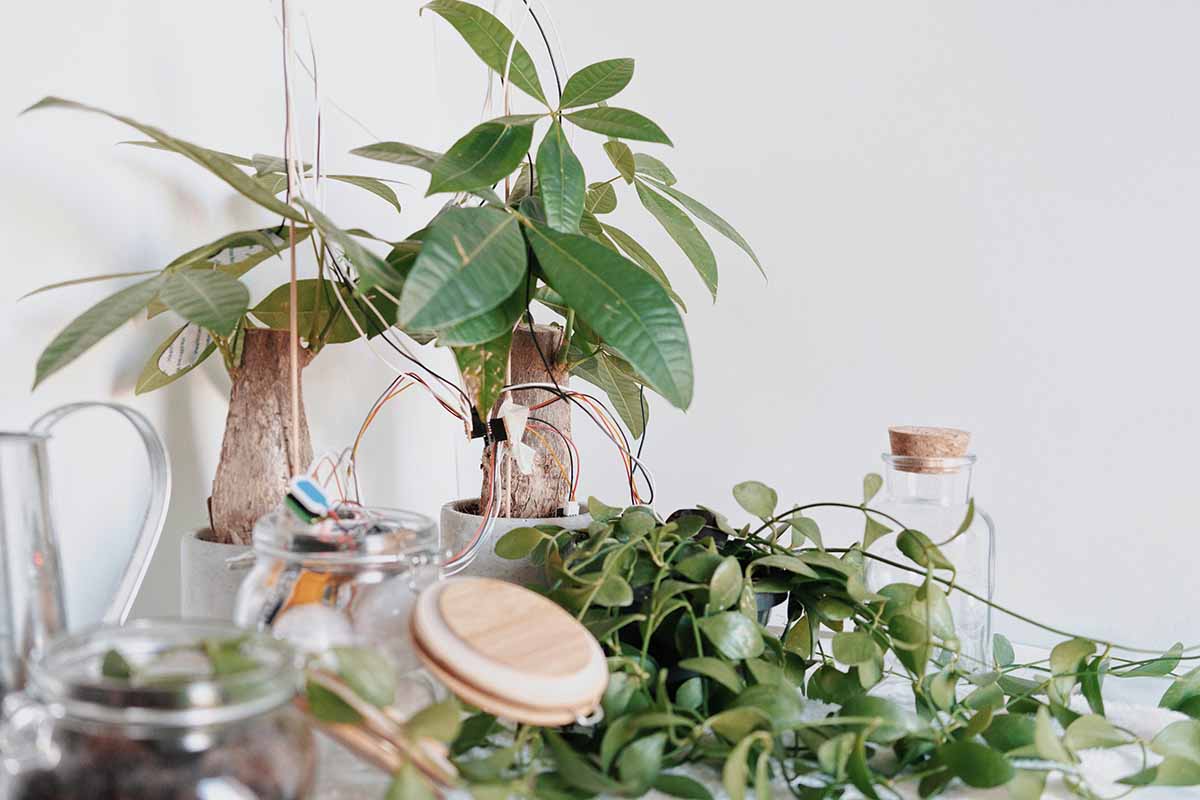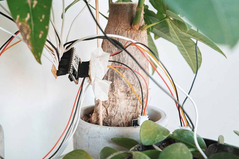 custom plants, ESP32, MPR121, PCBs, Mozzi library, amplifiers, speakers, alkaline batteries